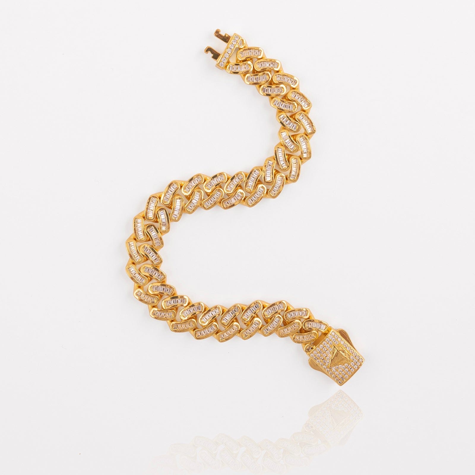 This bracelet is crafted from premium materials. The gold plating resists fading. Each link is smooth and comfortable against your skin. The 12mm Cuban link baguette bracelet is designed to fit most wrists. Choose it as a gift for someone special. It makes birthdays and celebrations extra memorable.