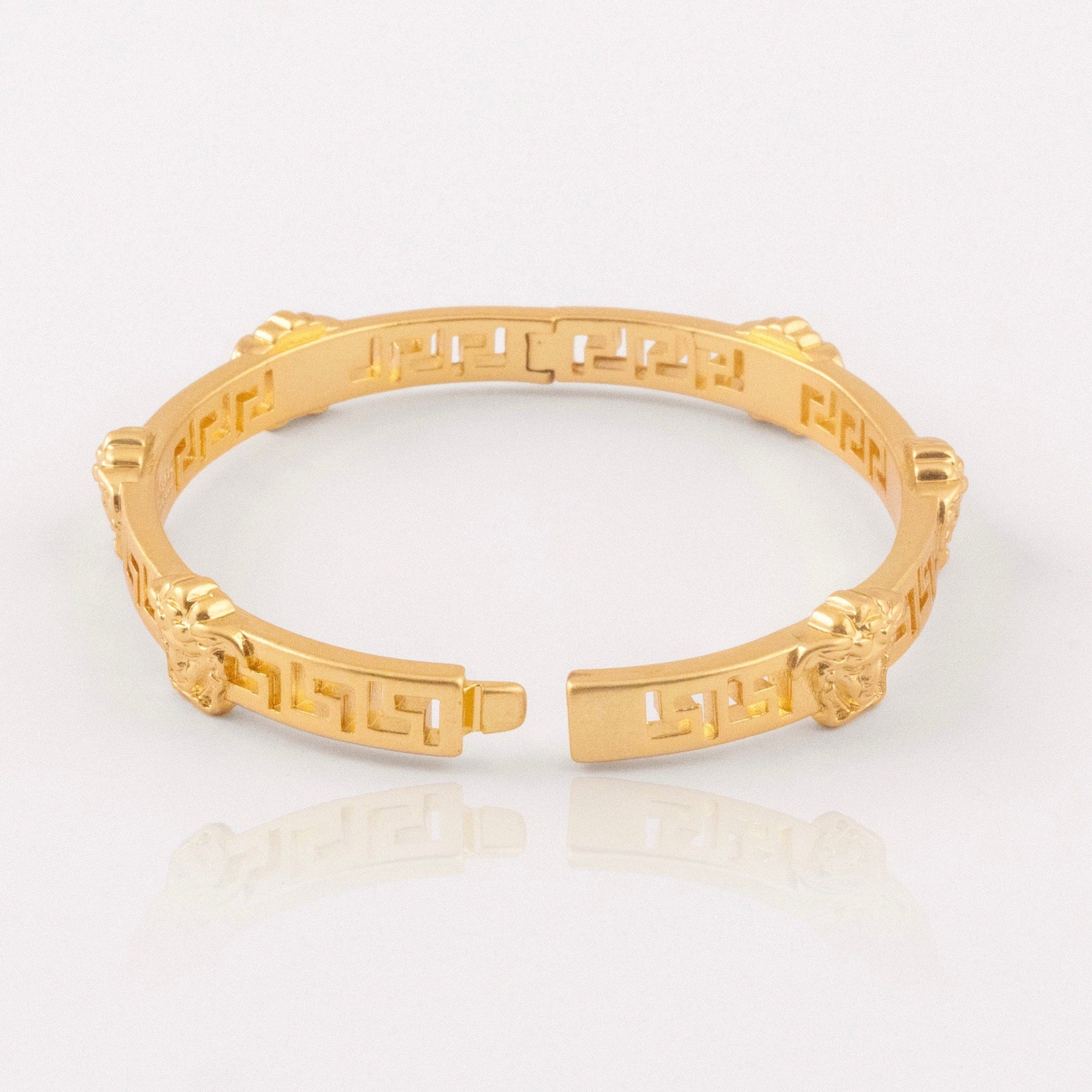 Luxur Greek Key Lion Head Bracelet (Gold)