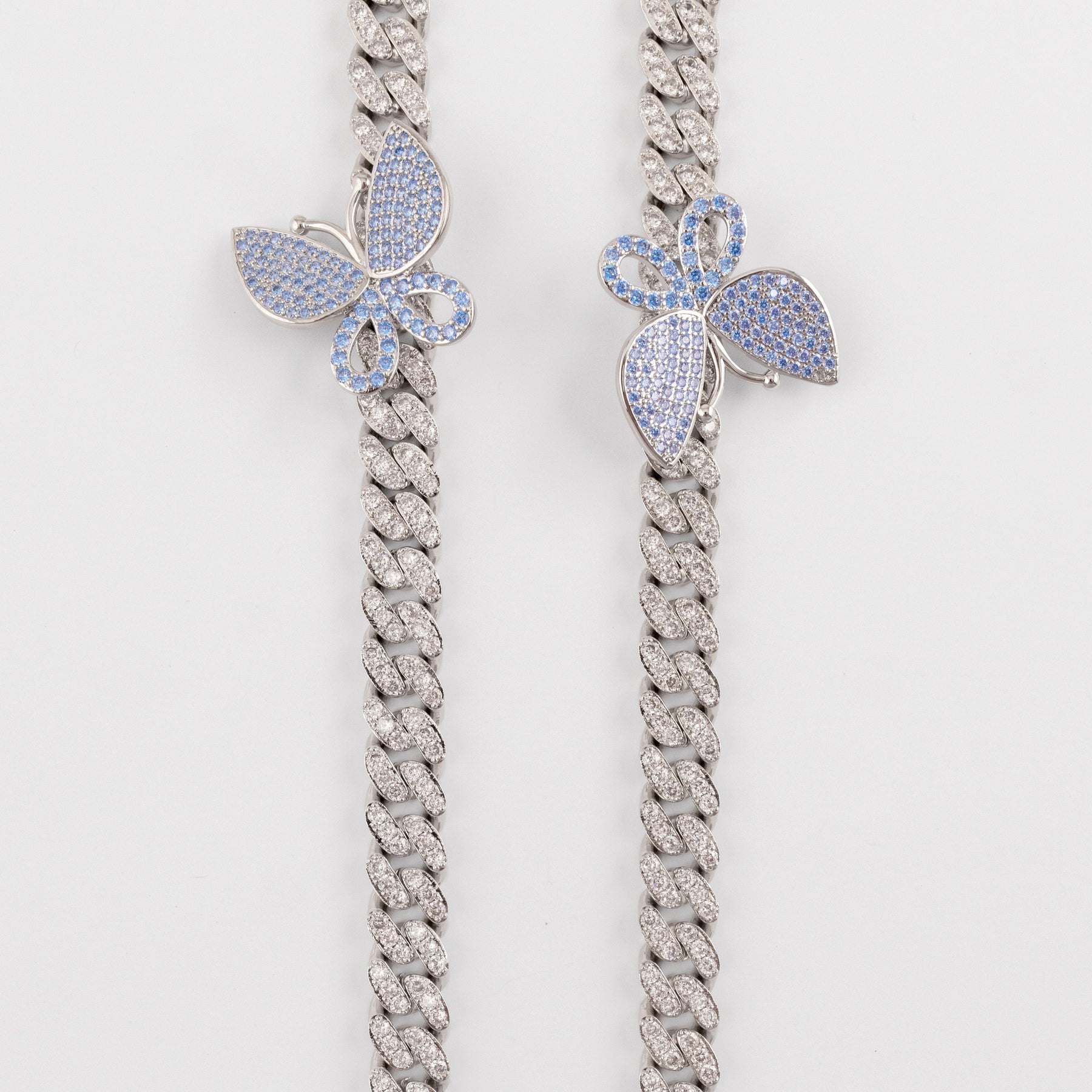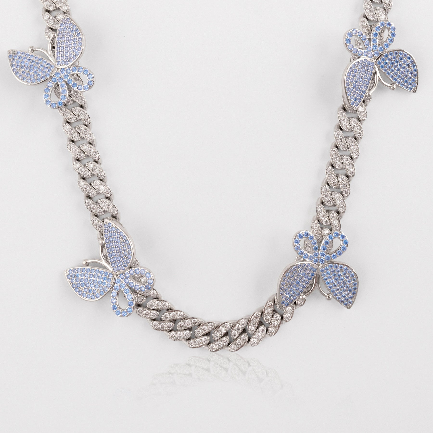 Blue Butterfly Iced Out Cuban Chain Necklace_White Gold