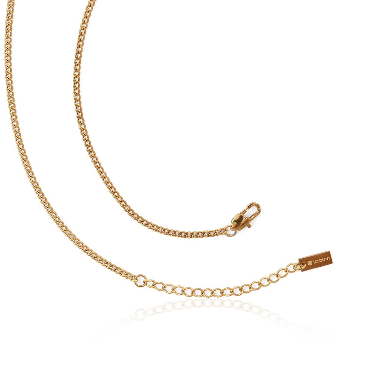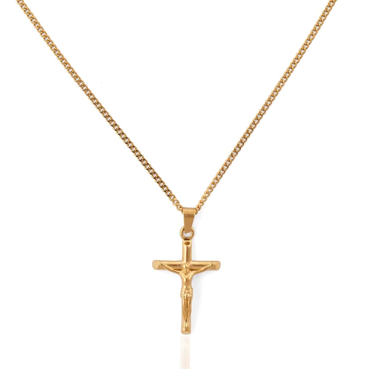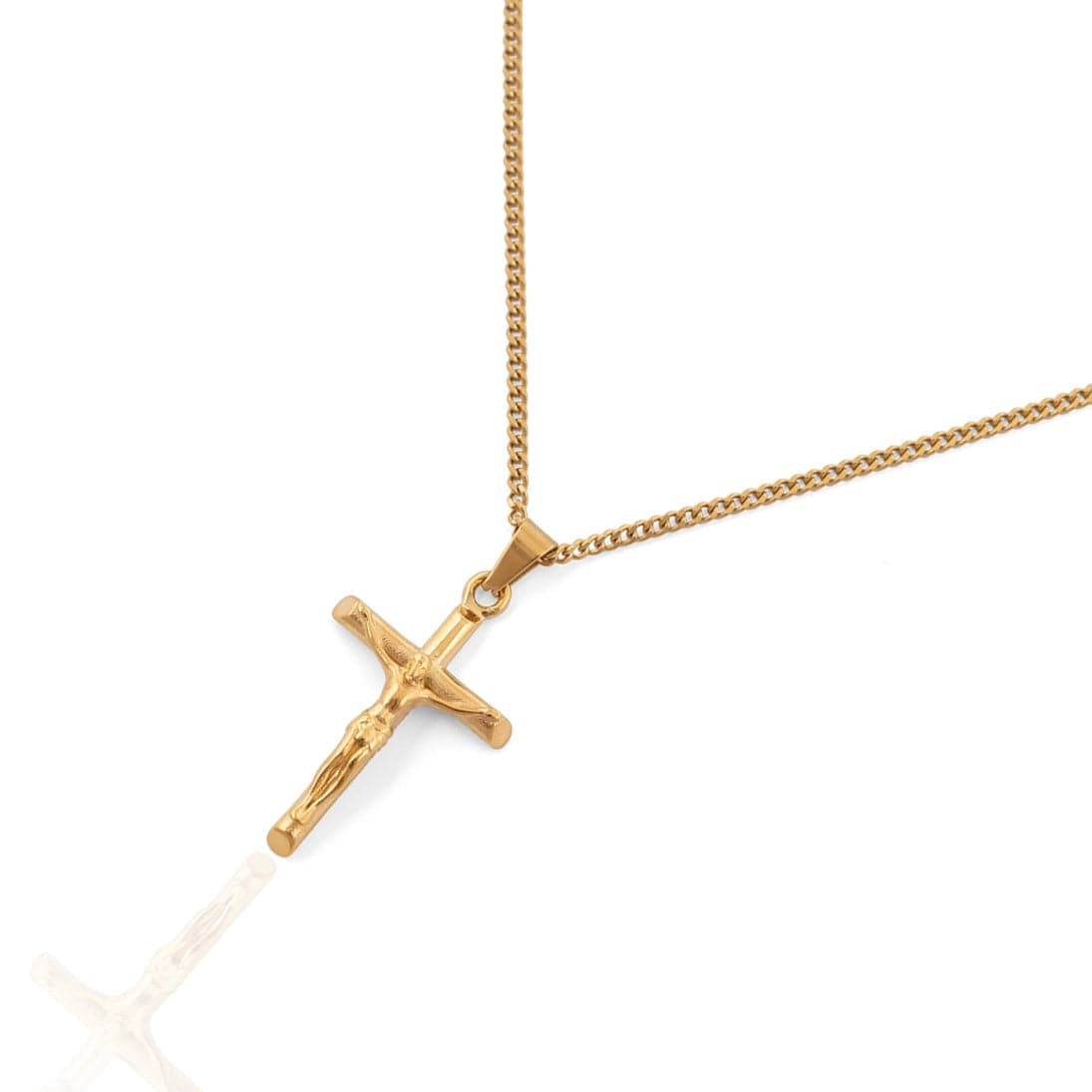 This 18K gold pendant features an intricately hand-carved crucifix and carries the story, strength, and compassion of Christ. Wear it as a reminder that the road to greatness requires sacrifice, perseverance, and the strength to push through the toughest moments. Suspended from a premium golden bail and a classic 2mm Cuban chain, it’s finished with scratch and fade-resistant protection.
