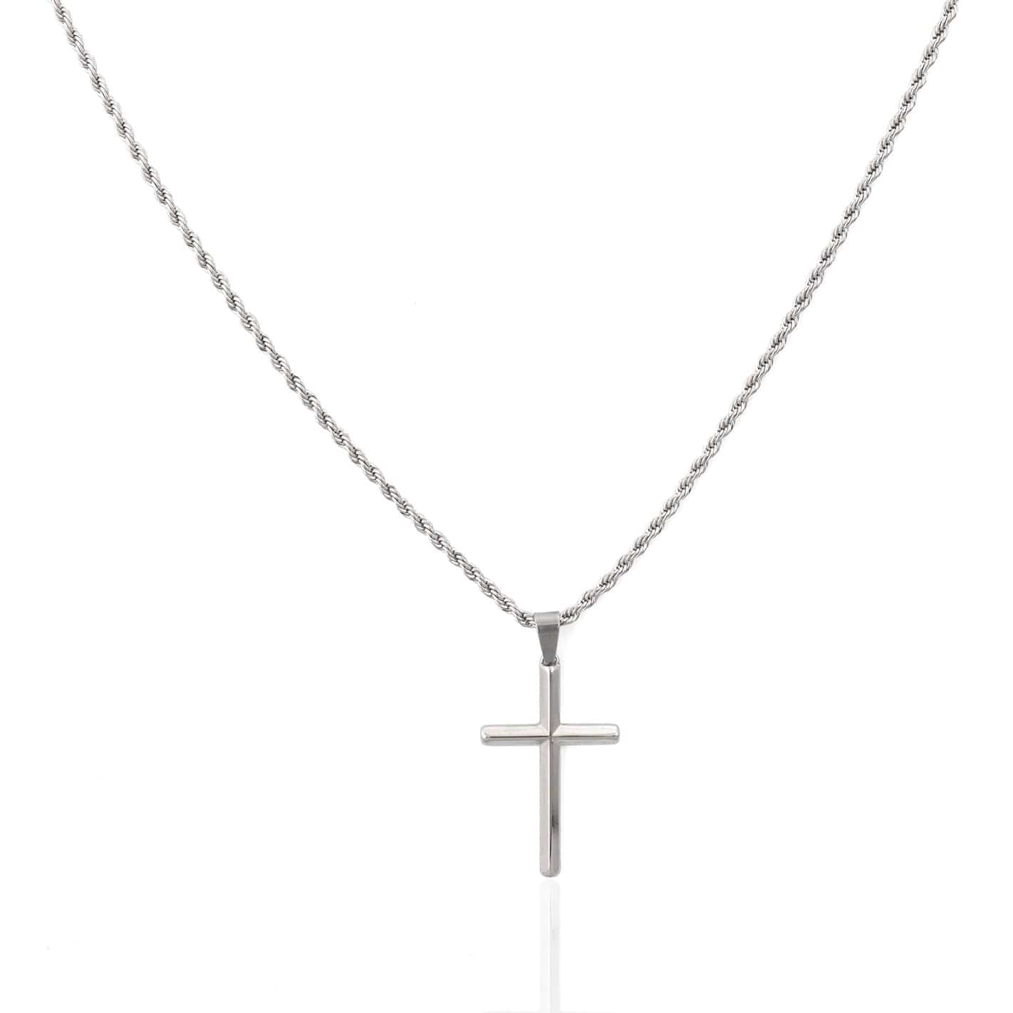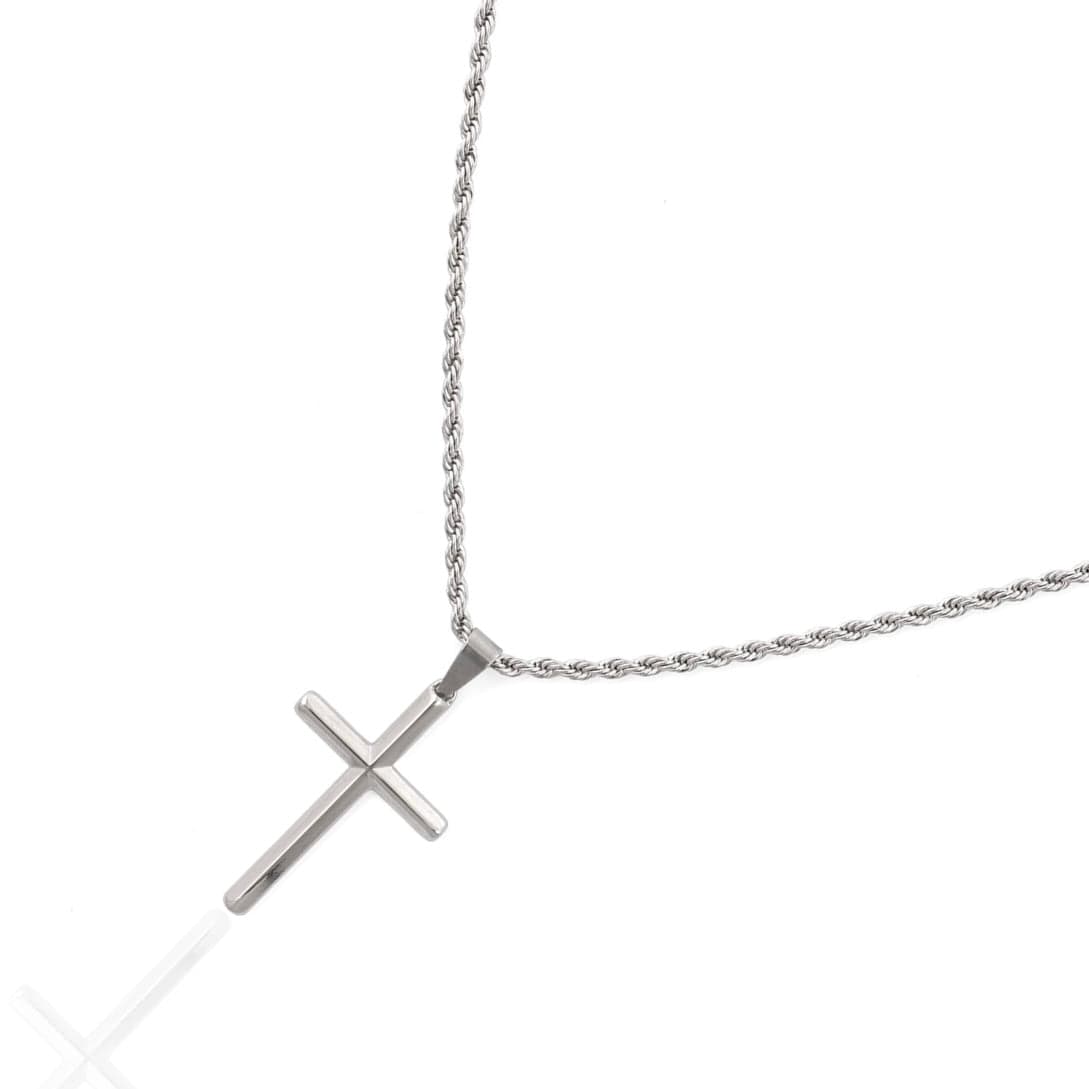 This timeless pendant showcases a beautifully handcrafted Silver cross, representing unwavering faith and the power of belief. Wear it daily as a reminder that success is in your hands, and you have the power to lead yourself wherever you want to go. It's suspended from a premium golden bail, 3mm rope chain, and finished with our signature scratch and fade-resistant protection.