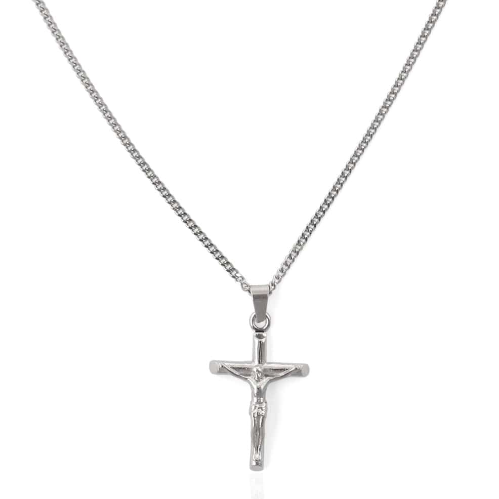 This silver pendant features an intricately hand-carved crucifix and carries the story, strength, and compassion of Christ. Wear it as a reminder that the road to greatness requires sacrifice, perseverance, and the strength to push through the toughest moments. Suspended from a premium golden bail and a classic 2mm Cuban chain, it’s finished with scratch and fade-resistant protection.