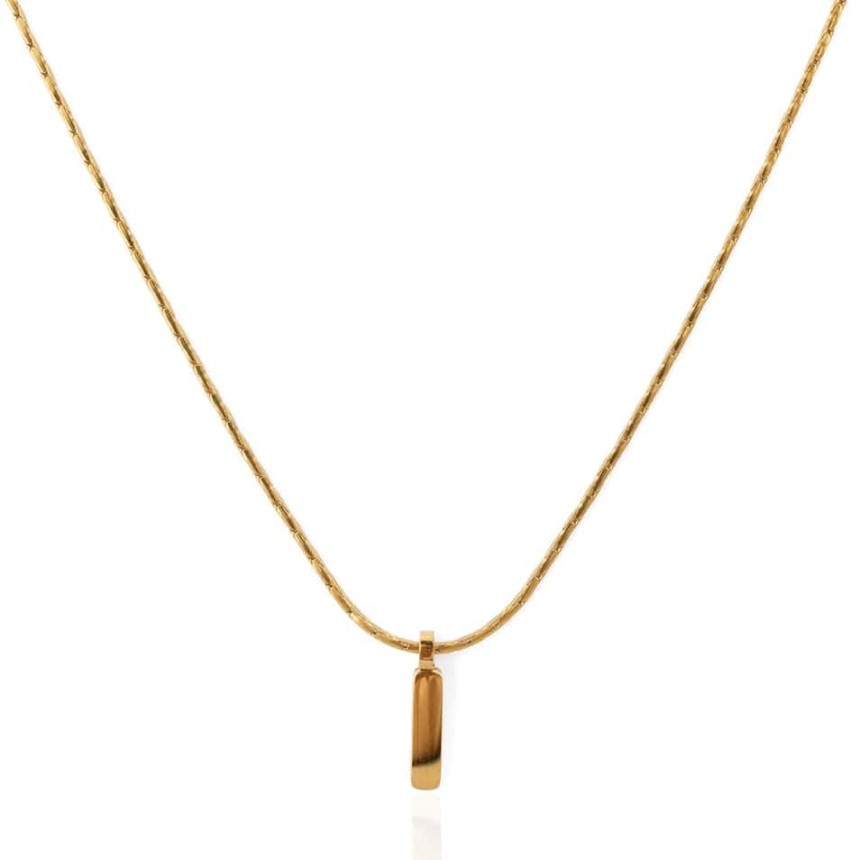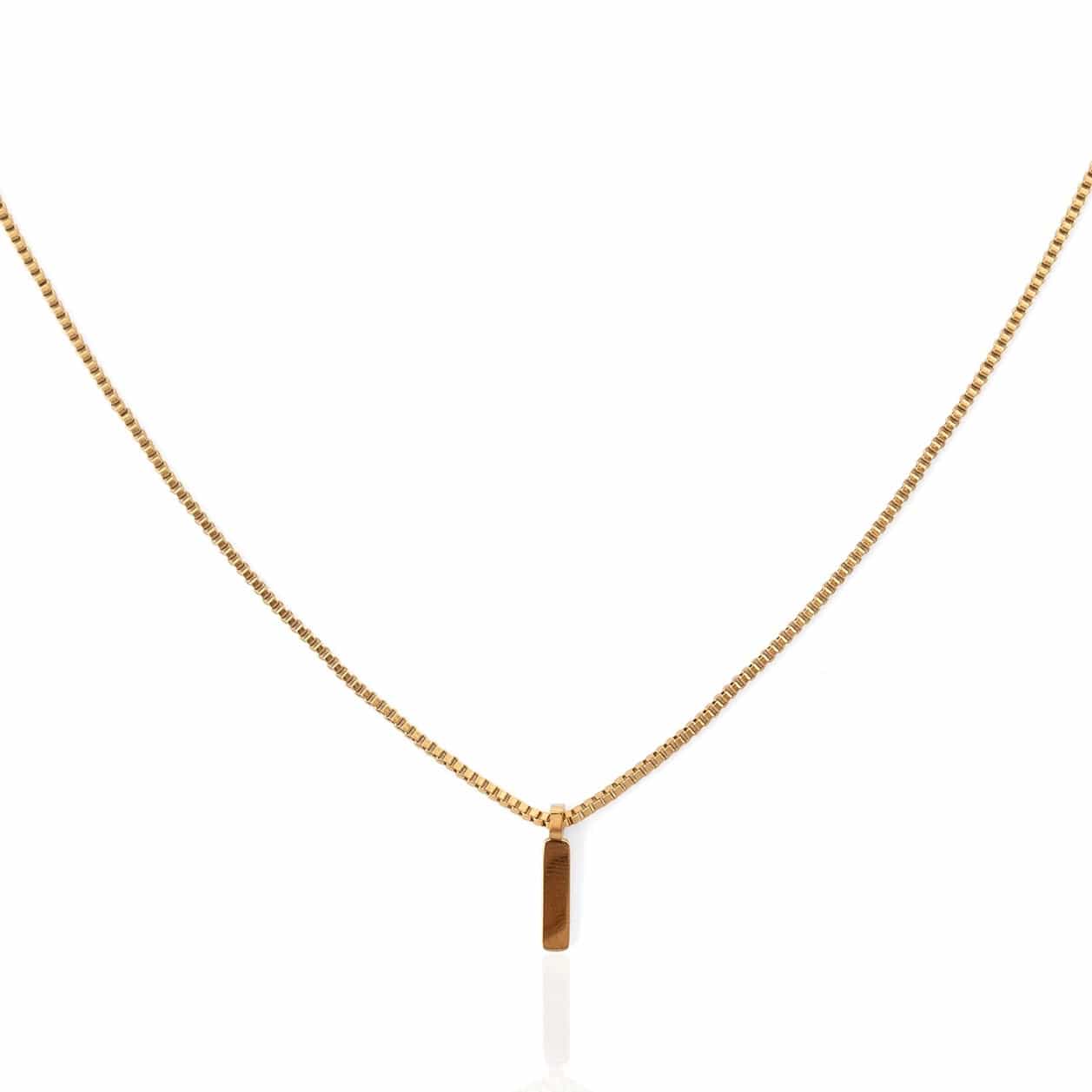 Shop the minimal gold bar pendant necklace with sleek box chain design. Lightweight, stylish & perfect for everyday wear or gifting.