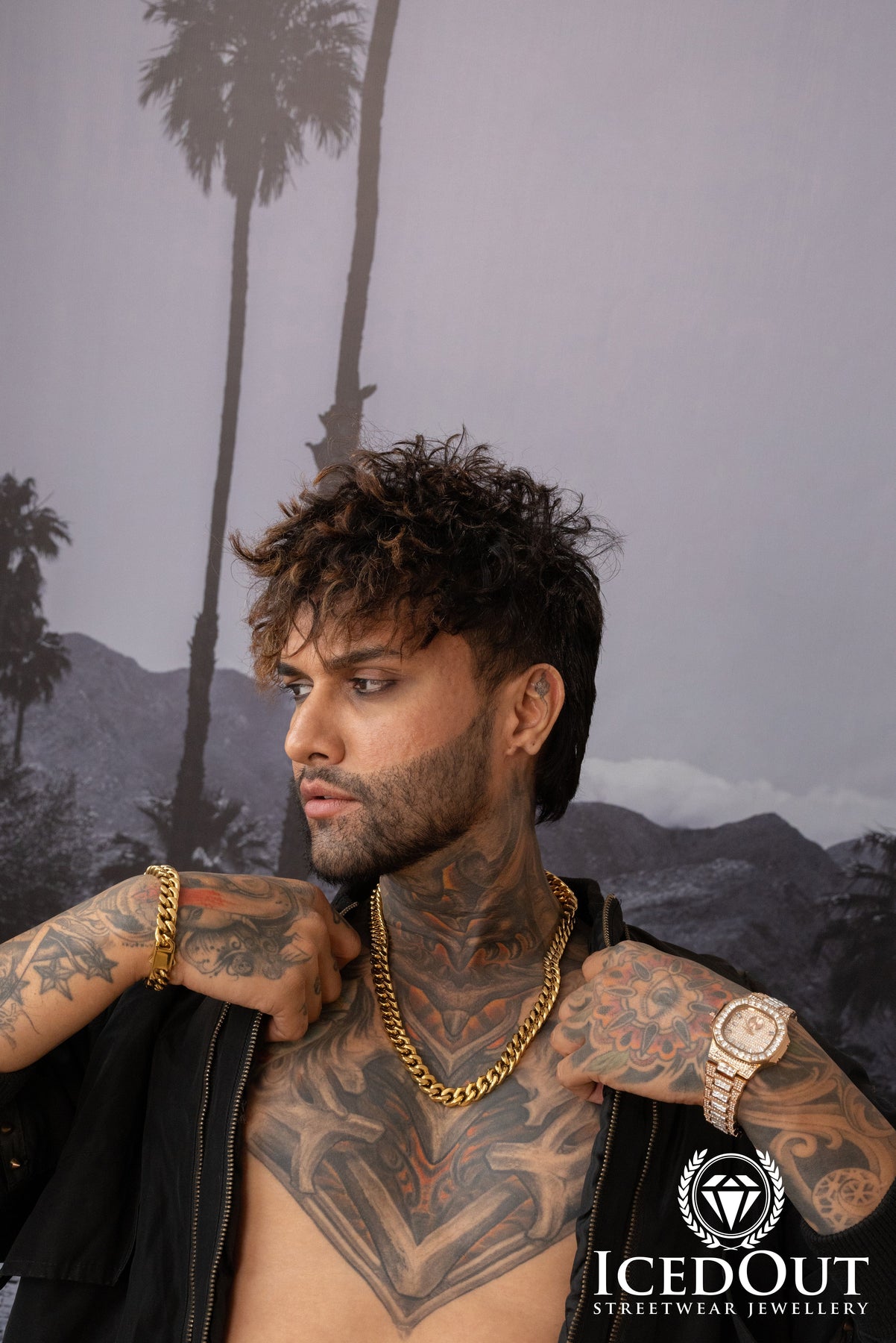 • 1x 12mm Cuban chain plated in 18k gold (choose your sizes)