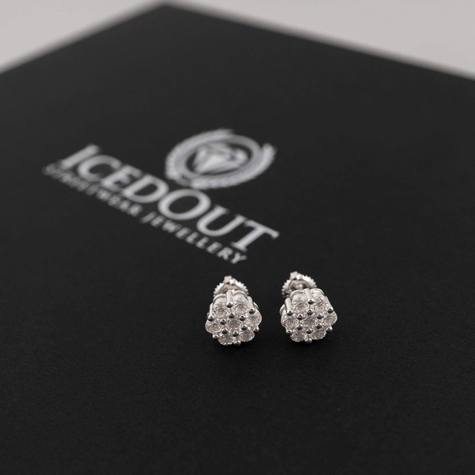 Diamond Cluster Stud Earrings - Iced Out Flower Design Moissanite