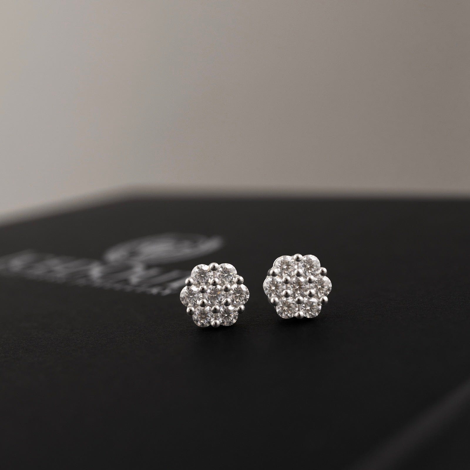 Elevate your everyday luxury with these stunning diamond cluster stud earrings. Each earring features a brilliant flower-shaped cluster of premium stones set in high-quality metal, creating maximum sparkle and dimension.
