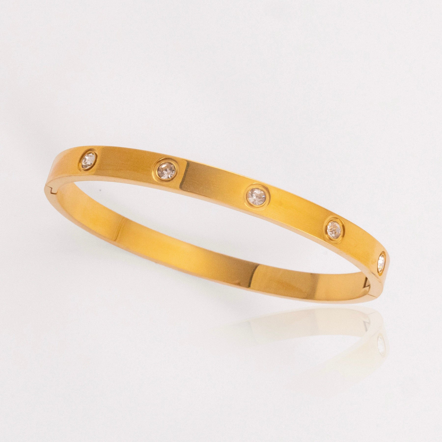 Our staff favourite: the combination of this bangle and the gold tennis bracelet!