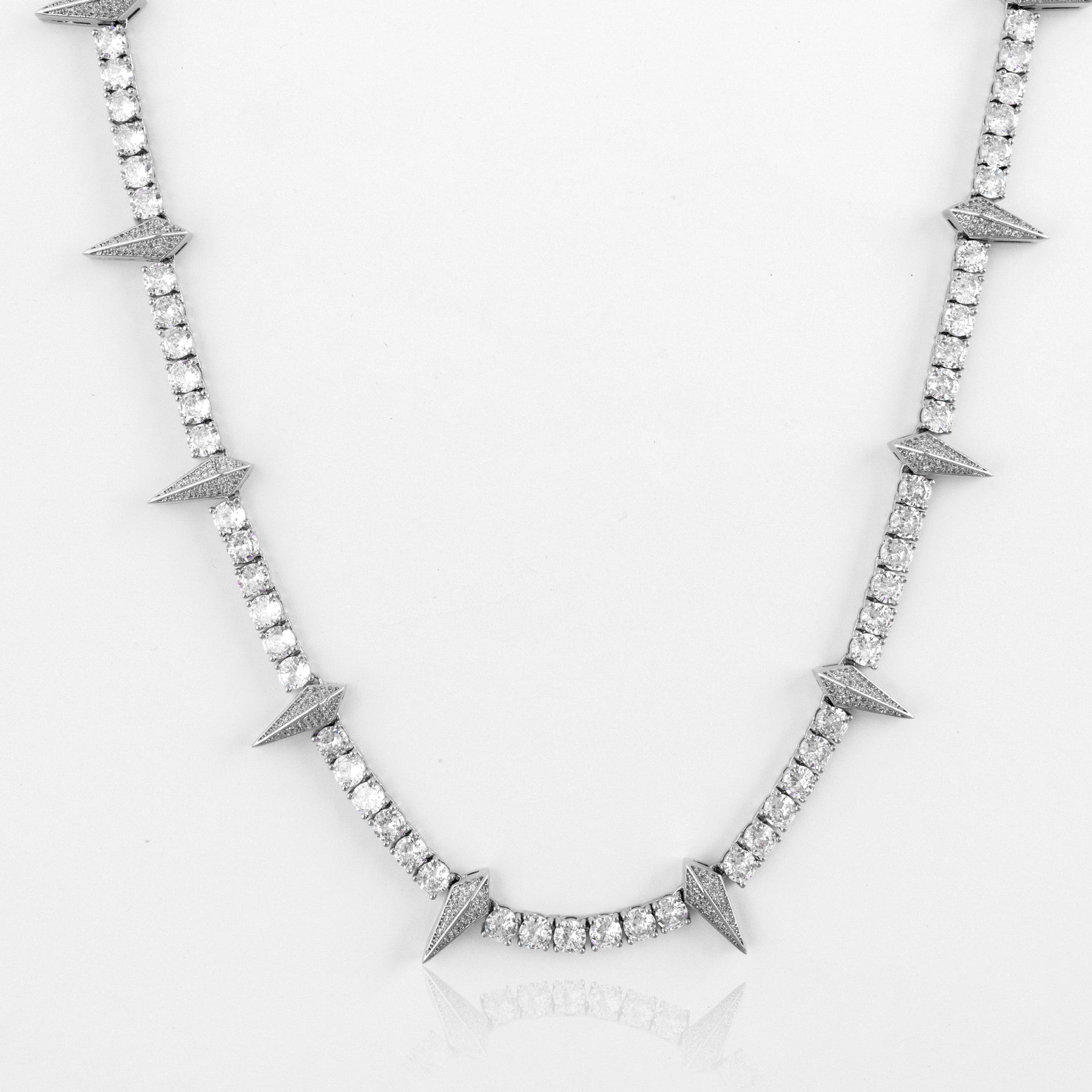 Make a bold statement with this stunning iced Cuban chain necklace featuring premium cubic zirconia stones and luxurious gold spike accents. This eye-catching piece combines the classic Cuban link design with modern bling aesthetics, perfect for elevating any outfit.